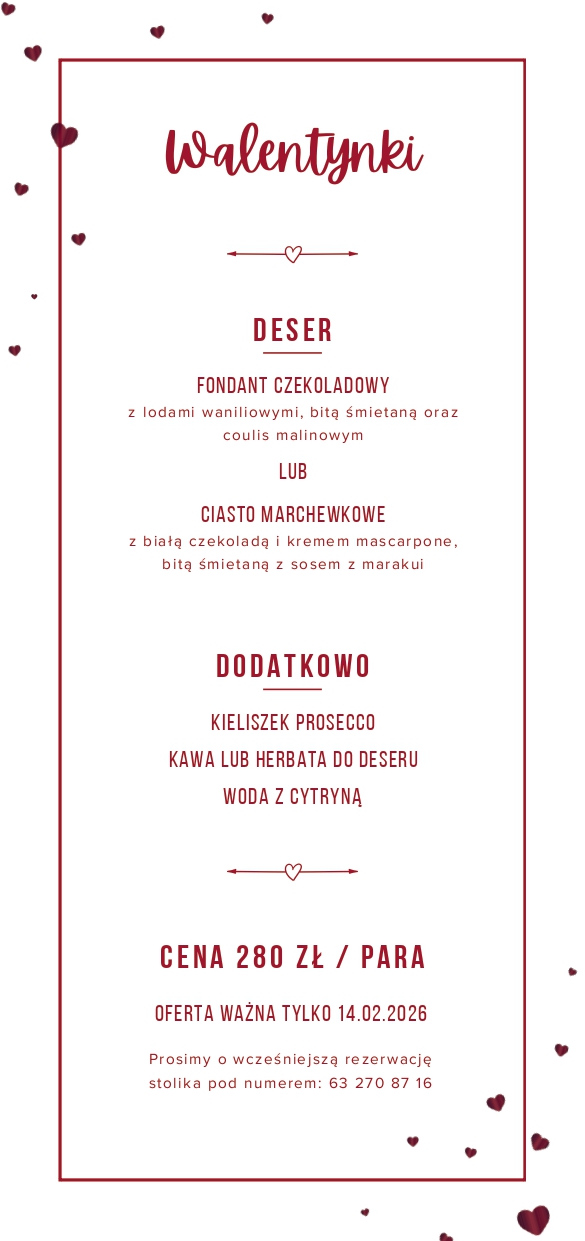 Wszystkich zakochanych serdecznie zapraszamy 14 lutego do Restauracji Yesiotr!