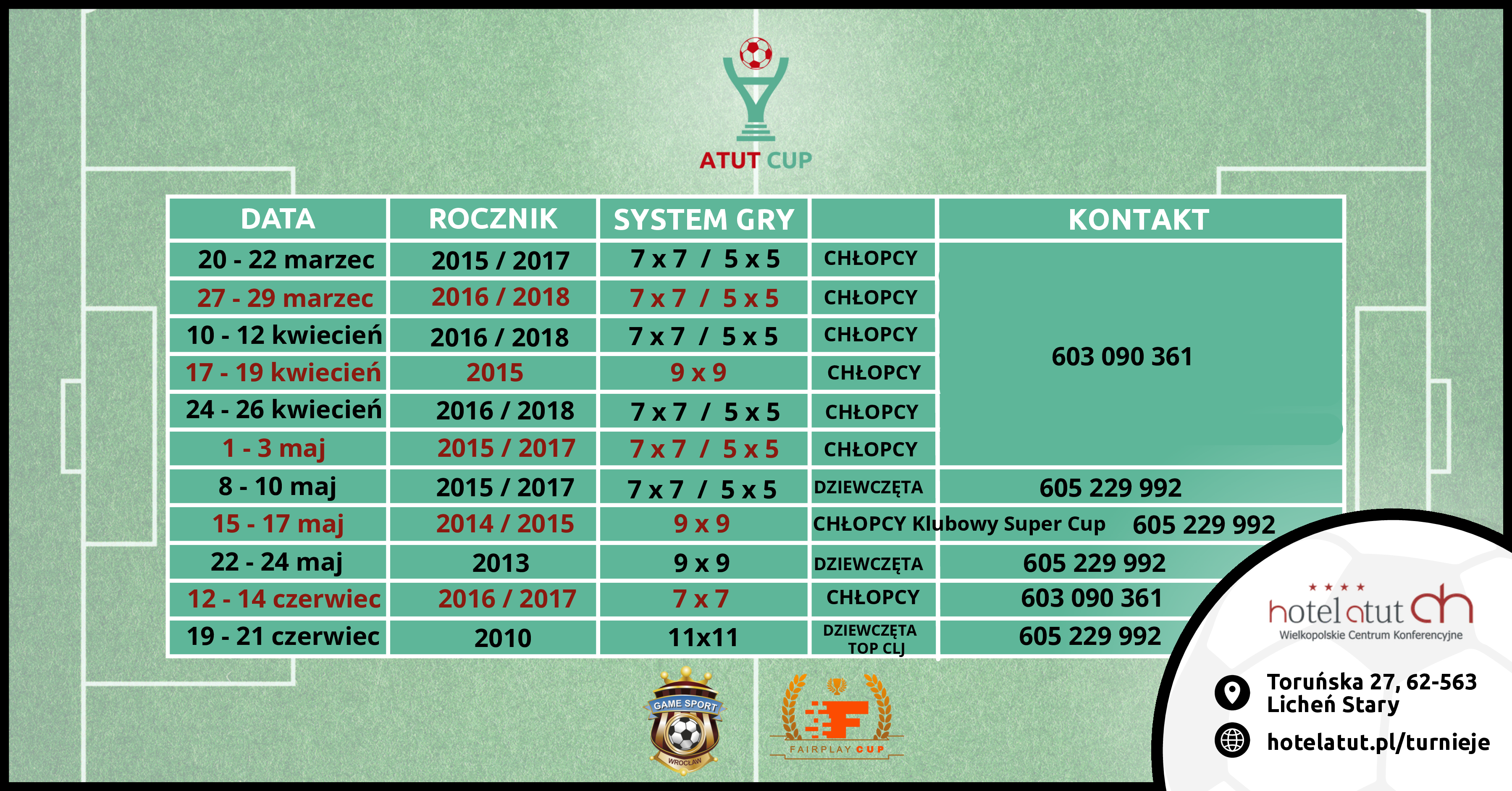 Szukasz idealnego miejsca na sportową rywalizację Twojej drużyny? Chcesz połączyć intensywne rozgrywki z profesjonalnym zapleczem i regeneracją? ATUT CUP powraca! Zapraszamy młodych adeptów futbolu do Lichenia Starego na serię turniejów, które odbędą się wiosną i wczesnym latem 2026 roku.
